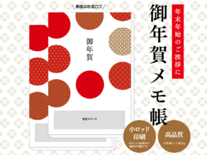当社オリジナル「御年賀メモ帳」 / INFORMATION / By ツダプロセス 年末年始のご挨拶に当社オリジナルの「御年賀メモ帳」はいかがでしょうか?今回のメモ帳は、表紙のみ社名入り(名入れ)のシンプルデザイン!さりげないアピールで新年のご挨拶にちょっとした贈り物で、お客様との距離も近づくはず!裏面のデザインは、ご挨拶を明記しております。ご用意いただいても、下記テンプレートから選んでいただいてもOK!テンプレートは5パターン用意しております。 2023年のご挨拶にもまだ間に合います!いかがでしょうか? ↑こちらからチェック!↑