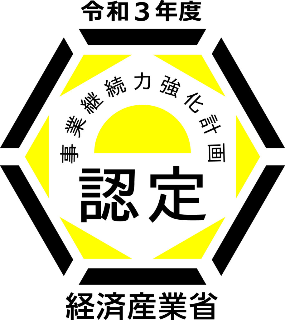 中小企業等経営強化法第56条第1項の規定に基づき、令和3年11月16日付で経済産業省の認定を受けました。 「事業継続力強化計画」認定制度は、中小企業が策定した防災・減災の事前対策に関する計画を経済産業大臣が認定する制度で